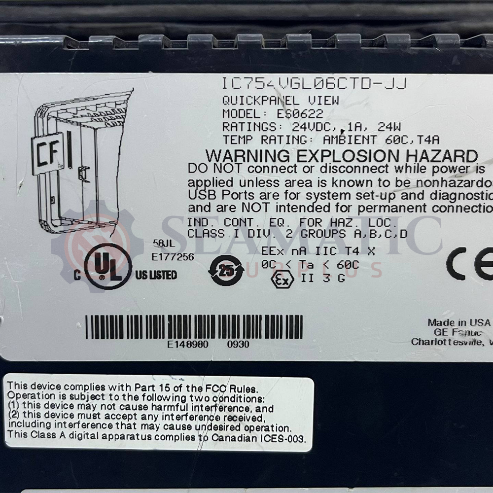 GE FANUC, ES0622, QUICKPANEL, VIEW, IC754VGL06CTD-JJ, TOUCH, PANEL